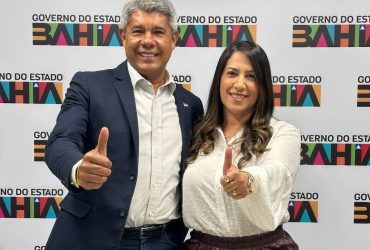 Deputada estadual Cláudia Oliveira ao lado do governador Jerônimo Rodrigues durante agenda política na Bahia ...