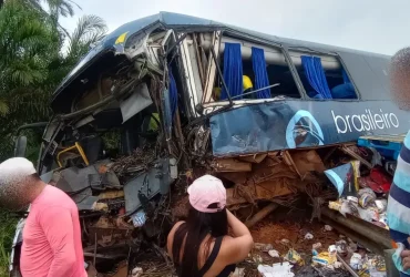 Uma colisão frontal entre um ônibus intermunicipal da empresa Brasileiro e um caminhão-baú na tarde ...