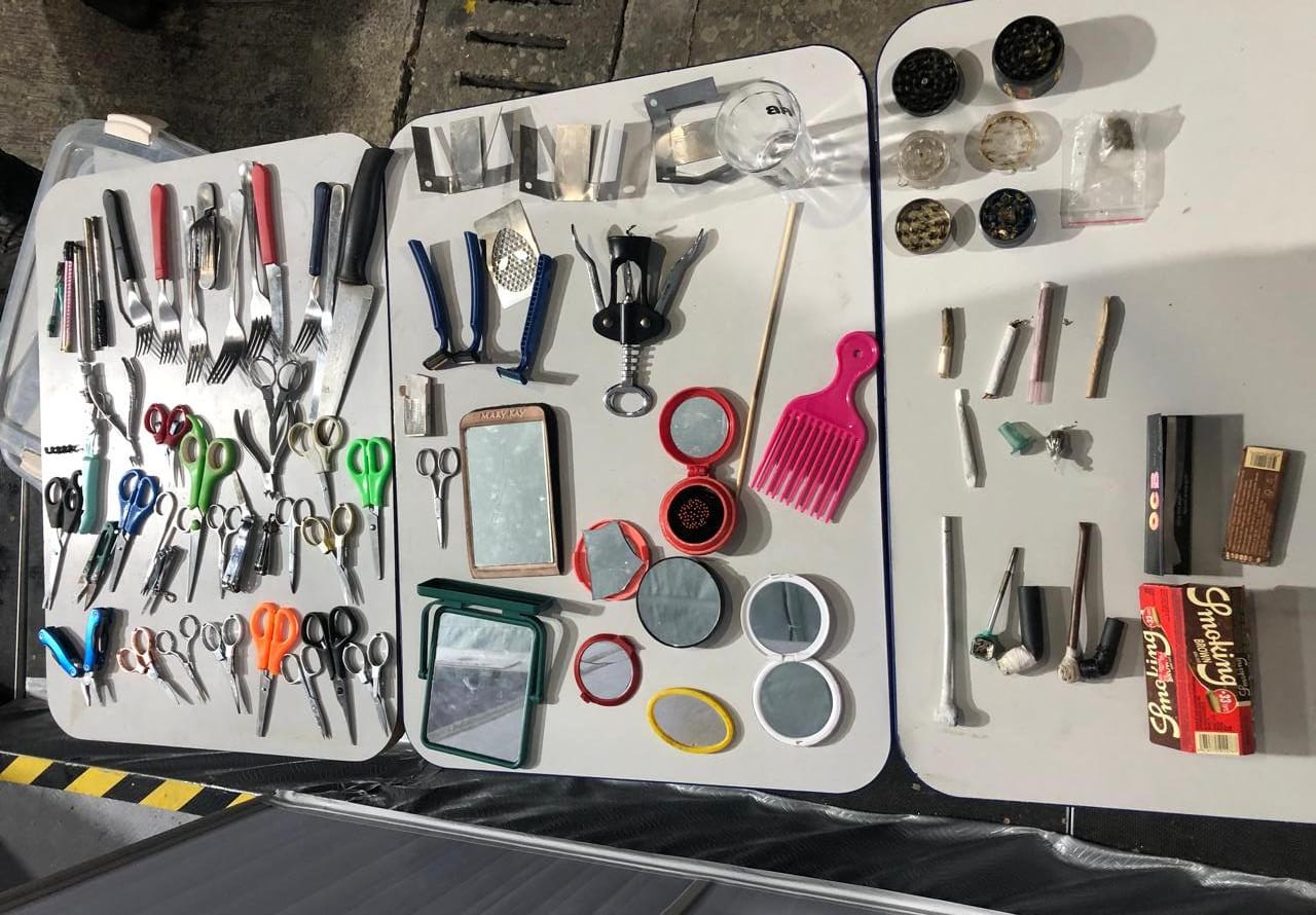Tesouras, facas, espelhos, garfos, alicates, palitos e outros objetos foram apreendidos durante as abordagens.
