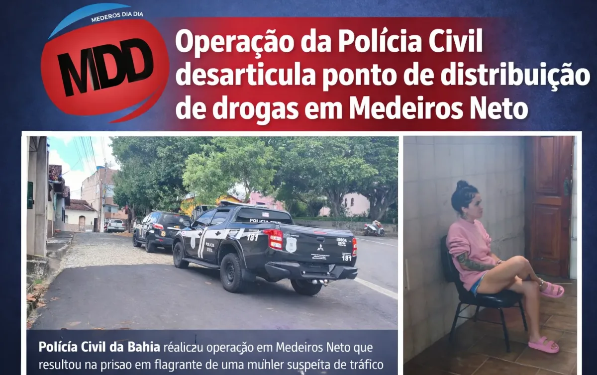 A Polícia Civil da Bahia prendeu em flagrante, na manhã desta segunda-feira (26), uma mulher suspeita de envolvimento com o tráfico de drogas no município de Medeiros Neto, no extremo sul do estado. A ação foi realizada por equipes do Núcleo de Homicídios e do Grupo de Apoio Tático à Investigação (GATTI), vinculadas à 8ª Coordenadoria Regional de Polícia do Interior (COORPIN), com sede em Teixeira de Freitas.