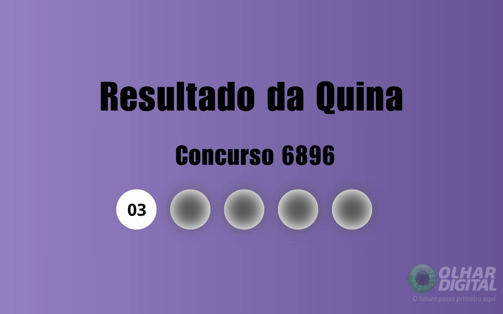 O sorteio do concurso 6896 da Quina aconteceu na noite deste sábado (6), às 21h. O prêmio desta loteria estava estimado em R$ 6,2 milhões.