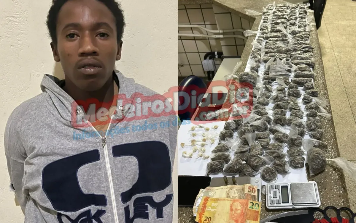 Na noite deste sábado (21), por volta das 21h30, uma guarnição do Pelotão de Emprego Tático Operacional (PETO), da 44ª CIPM, realizou a prisão de um jovem de 19 anos no bairro Uldurico Pinto, em Medeiros Neto.