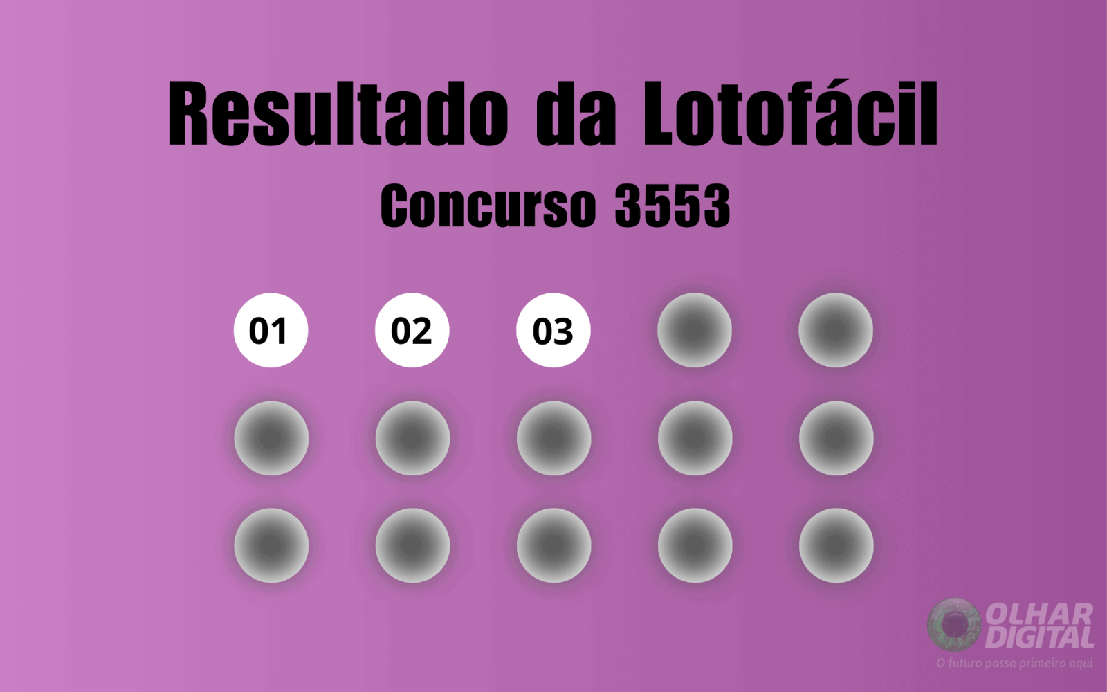 O sorteio do concurso 3553 da Lotofácil aconteceu na noite desta quarta-feira (3), às 21h. O prêmio desta loteria estava estimado em R$ 1,8 milhão.